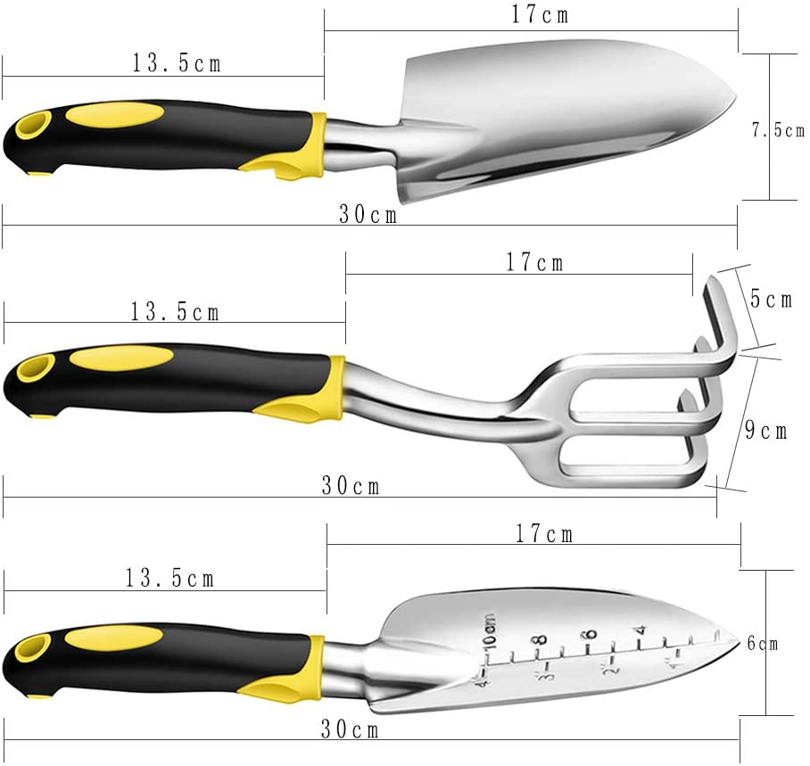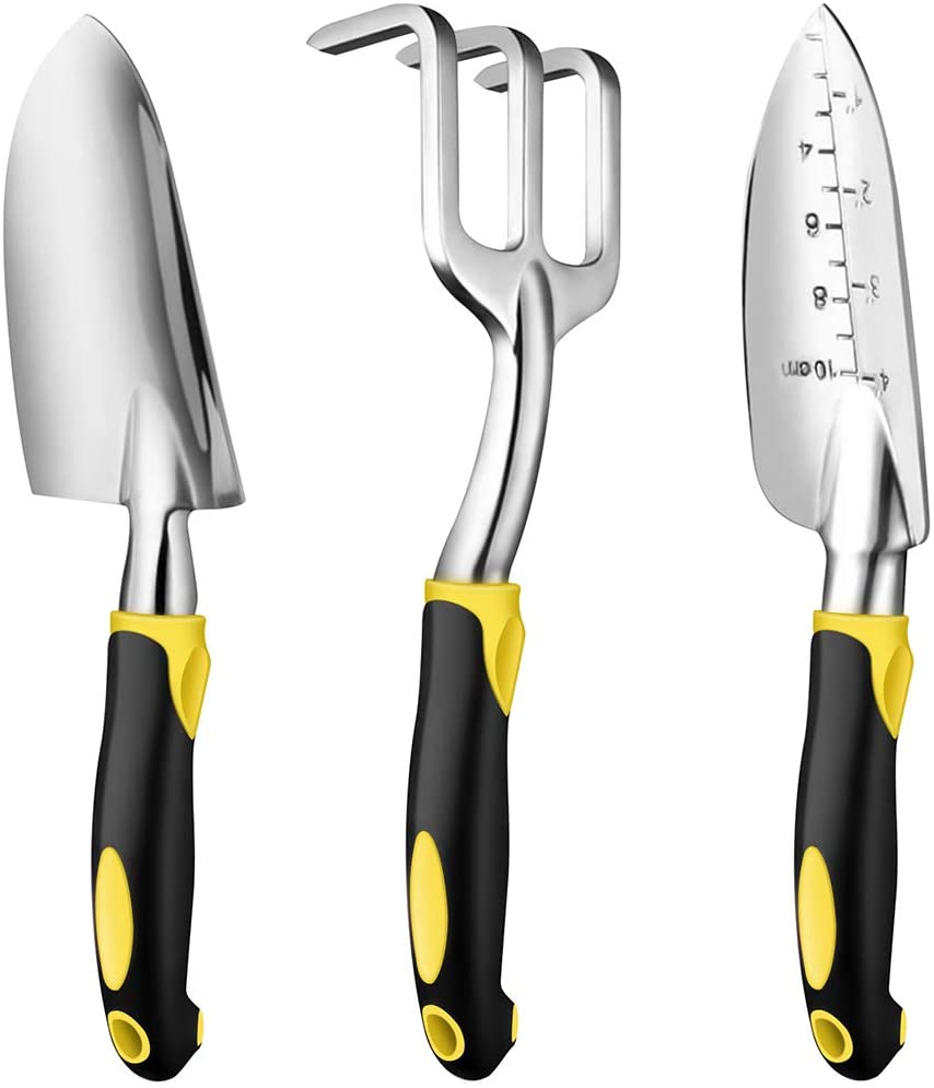 3-Piece 12'' Cast-Aluminum Gardening Tool Kit - Trowel, Transplant Trowel, Cultivator with Ergonomic Handles