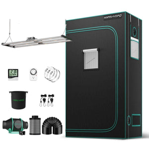 This comprehensive grow tent kit includes the high-performance FC4000 LED light, a 2’x4’ tent, a 4-inch fan, carbon filter, flex ducting, and essential accessories. Perfect for creating an optimal indoor growing environment.