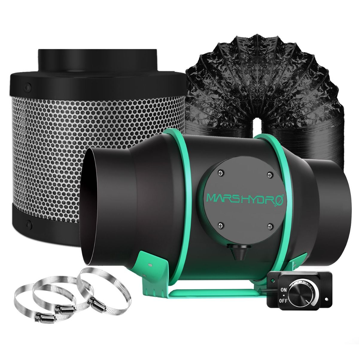Mars Hydro 4 Inch Inline Duct Fan And Carbon Filter Combo With Speed Controller